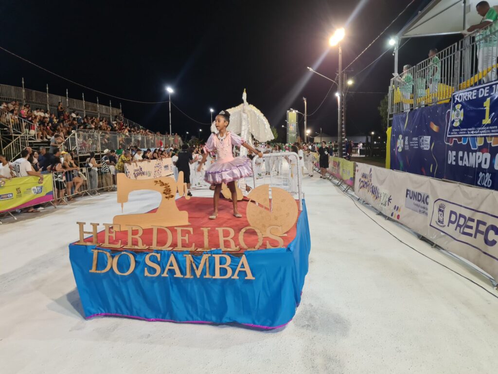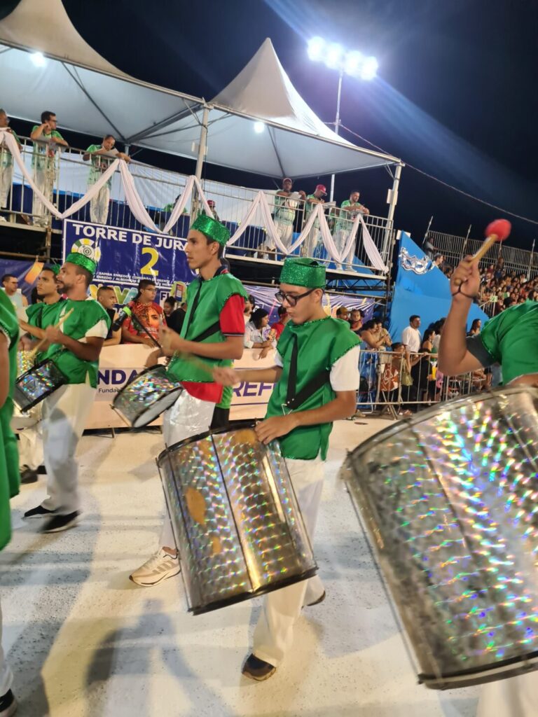 Conhecida por envolver crianças e adolescentes de comunidades da Capital, a Herdeiros do Samba levou para a avenida uma apresentação marcada pela energia e inclusão. A primeira ala, composta por pequenos sambistas, apresentou a essência da escola e encantou o público presente.