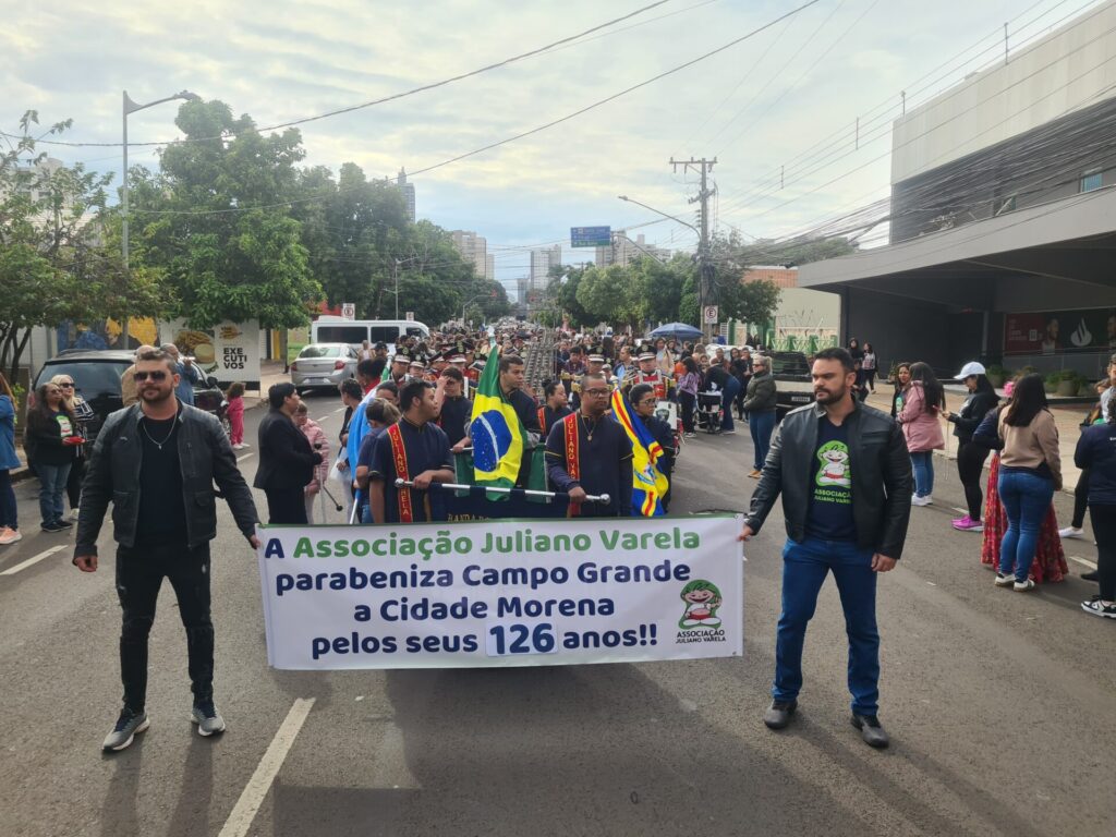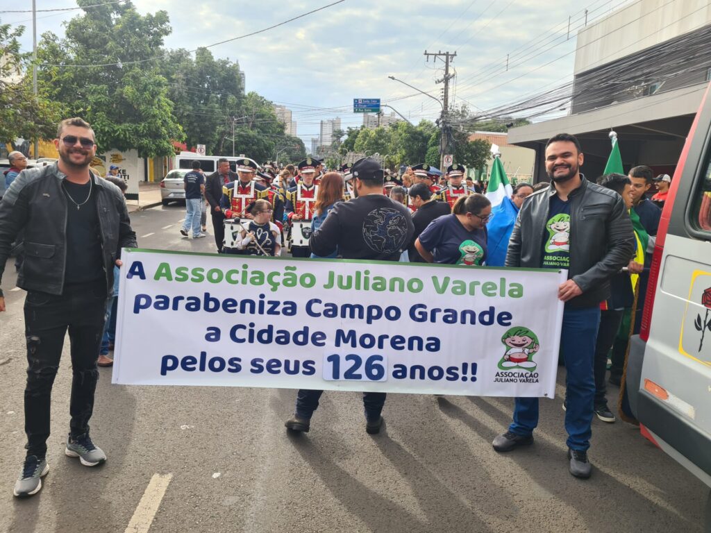 Cerca de 40 mil pessoas compareceram ao desfile de aniversário de Campo Grande, que contou com a presença da Associação Juliano Varela. A presidente e co-fundadora, Malu Fernandes e seu filho Juliano Varela, inspiração da instituição estiveram presentes à cerimônia cívico-militar em comemoração aos 126 anos de Campo Grande, capital do Estado de Mato Grosso do Sul, realizado na terça-feira (26/08), na Rua 13 de Maio.